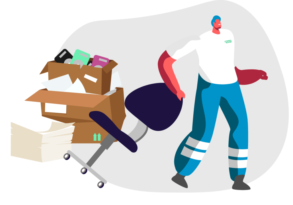 Pulp handles full office clear outs involving unwanted furniture, confidential paperwork, and IT equipment or data media for secure destruction.