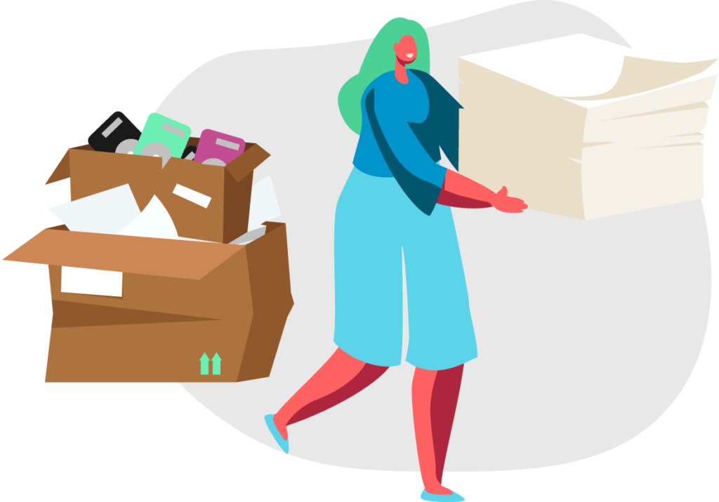 - Confidential paper: boxed files, filing systems, and archived paperwork